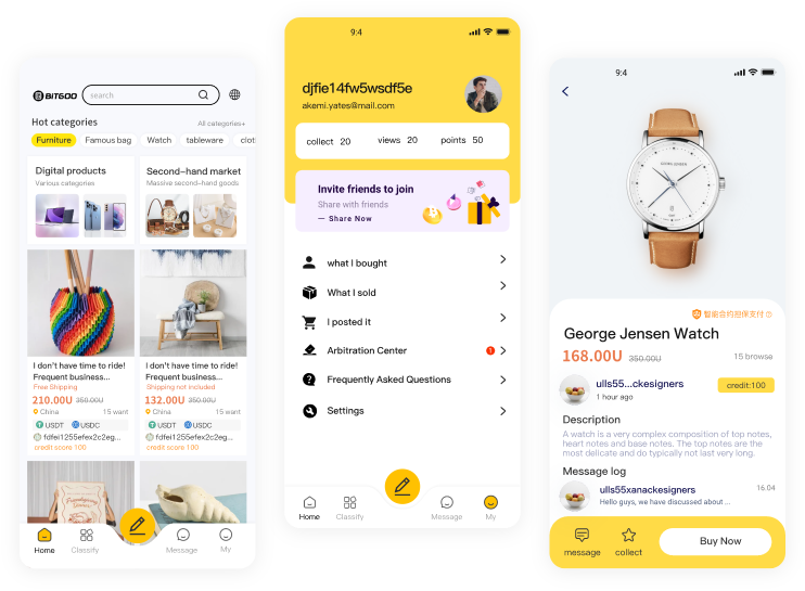 Bitgoo(币购)是新一代全球二手交易平台,将传统电商体验 与 Web3 支付与信任机制 融合在一起。 用户使用钱包即刻登录,交易由智能合约托管,稳定币完成跨境结算。